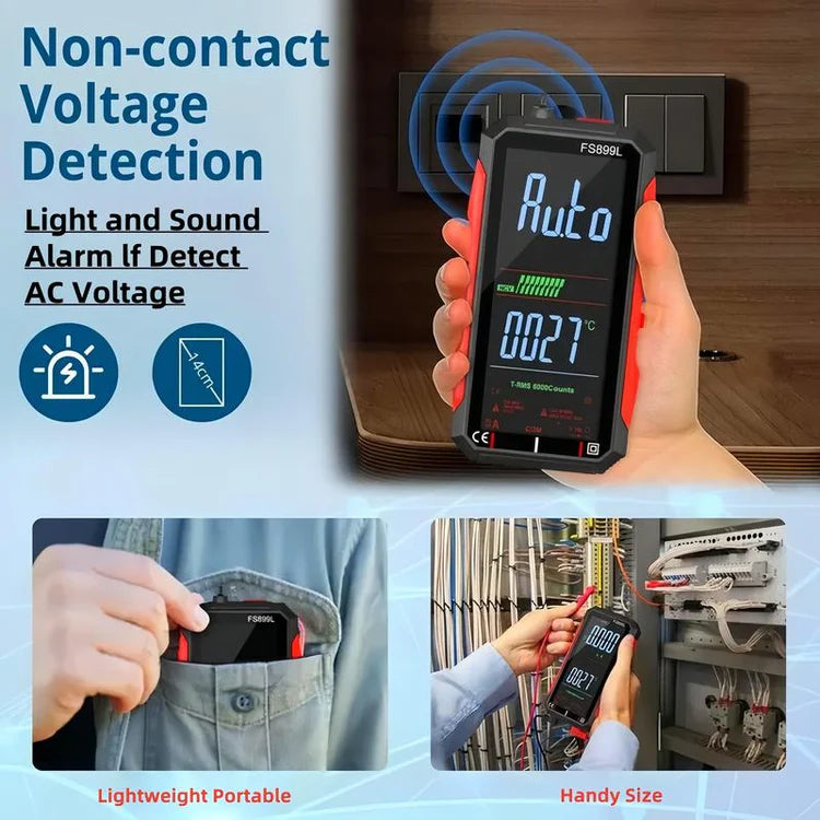 The built-in Non-Contact Voltage (NCV) mode instantly alerts you to live wires without touching exposed conductors, helping you work faster and safer in electrical environments.